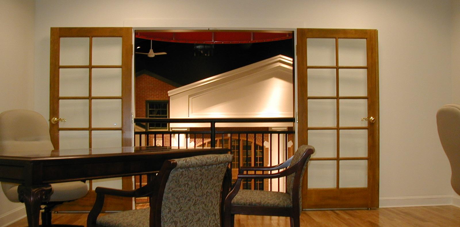 Exterior systems used include brick-block masonry, EIFS and insulated metal wall panel. Interior features include areas for the main sales floor, fire truck sales, vendor gear sales and a small restaurant/coffee shop.  Administrative areas are located on both the first and second floor. An architectural bridge connects the second-floor administrative offices, which are located on each side of the showroom.