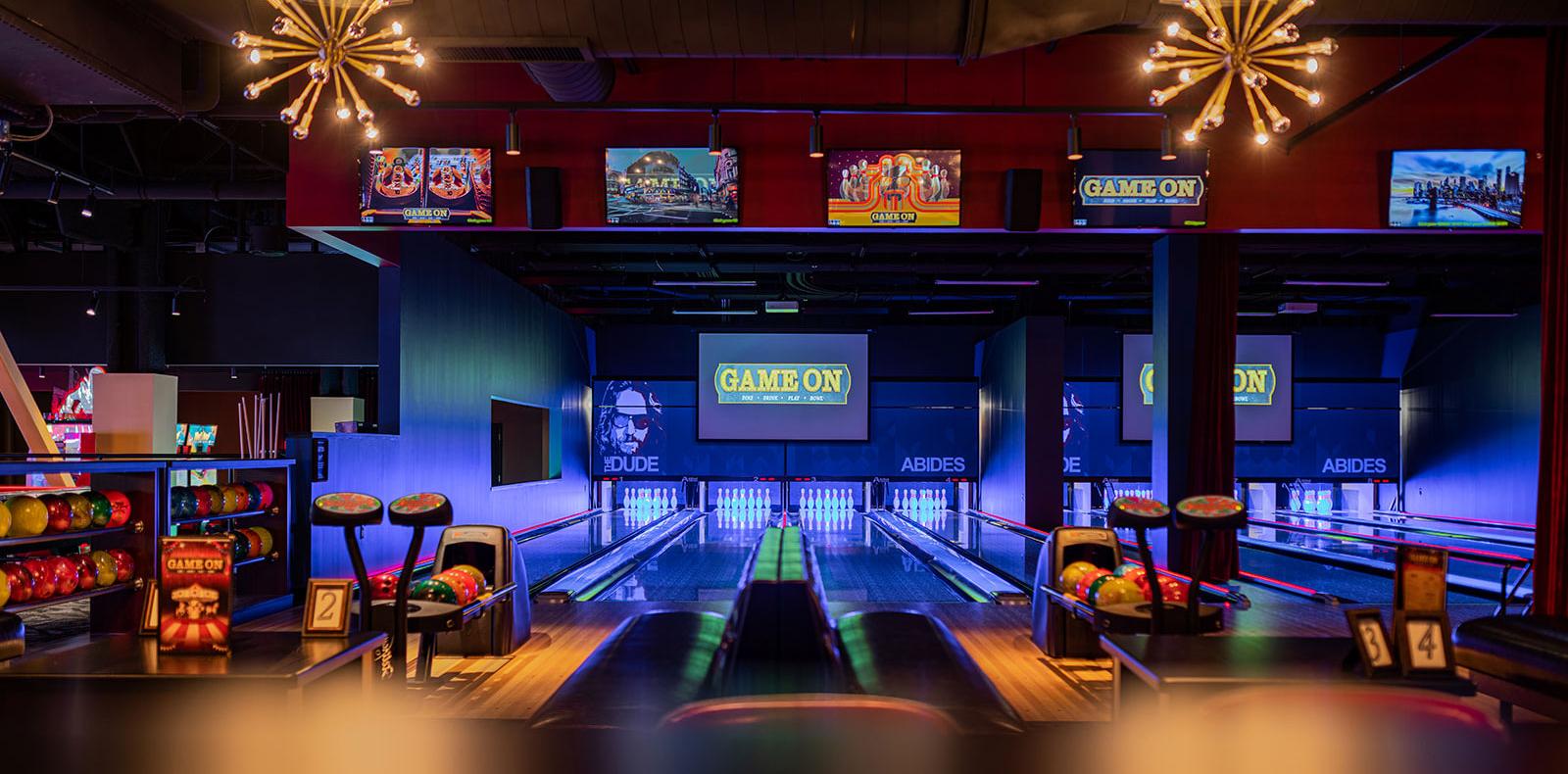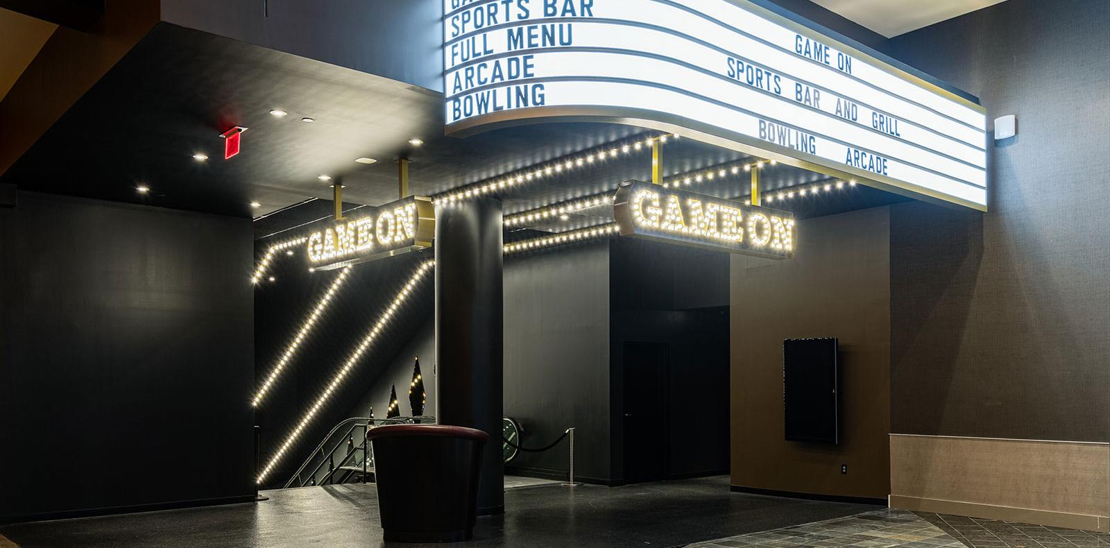 Located on a lower-level entrance of the Earth Expo & Convention Center at Mohegan Sun, the new 23,000 square-foot restaurant & bar, GAME ON! has various social interactive elements to host parties and private of events. Carlin Construction provided construction management for an entertainment facility that includes a 65-foot bar with various craft beers on tap, eight-lane luxury bowling alley, a music stage for live entertainment and space to accommodate Karaoke, Ping-Pong tables, Shuffleboard, Billiards, Darts & Arcade Games. Scope of work included sitework, concrete, select demolition, millwork, structural steel, spray fireproofing, caulking, doors, windows, painting, flooring, metal stud & gypsum, lavatory partitions and accessories, fire protection, plumbing, HVAC and electrical. Construction of a full-service commercial kitchen, elevator, and escalator were also included in the project.