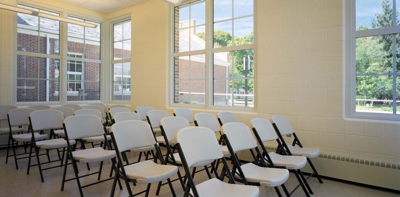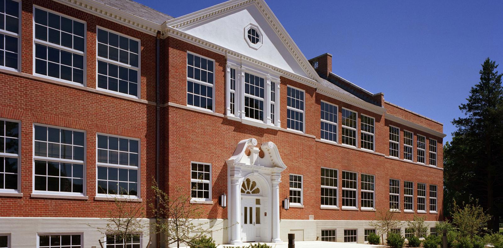 This unique and complex project transformed an existing 3-story public school structure into a new town hall — renovating a 28,000 sf building that dates back to the early 1900s. The multiple aspects of this project included replicating the exterior façade to construct a matching 16,000 sf youth services center. The brick façade of the existing building was cleaned, repaired for leaks and repointed. Existing double-hung wood windows were replaced, and a new floor system was installed on the original existing bar joists.