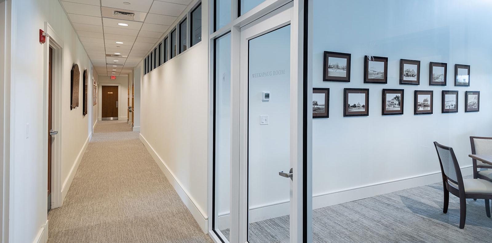 Located on Winnapaug Pond in Westerly, Rhode Island, Weekapaug Golf Club is a private, member-owned golf club with all the amenities a private club member could want, from casual and formal dining, fitness center, event space and more. Weekapaug Golf is considered one of the best 9-hole golf courses in New England. Carlin Construction provided the design and construction of the newly renovated and expansion of the existing 15,334 sf Club House. Renovations consisted of the demolition and construction of interior partitions and finishes to reorganize existing interior spaces, including card room, fitness room, golf pro shop, administrative offices and a new front entry canopy. Additions included approximately 2,191 sf of kitchen space, lobby area and covered patio.