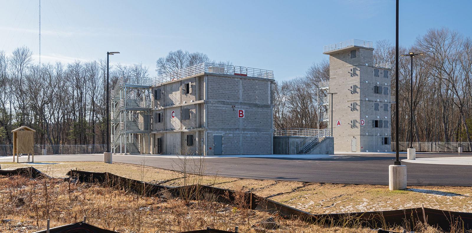 Carlin Construction’s Scope of work consisted of construction of a new Administration and Education Facility, a new Vehicle Maintenance Facility, a new Class A Burn Building, a new Training Tower, new Rehab Pavilions, and various new fire training props. The new Administration and Education Facility is approximately 14,100 GSF and the Vehicle Maintenance Facility is approximately 11,000 GSF. The Class “A” Burn Building is approximately 6,981 GSF. The Rehab Pavilions total approximately 1,600 GSF and the Training Tower is approximately 3,400 GSF.